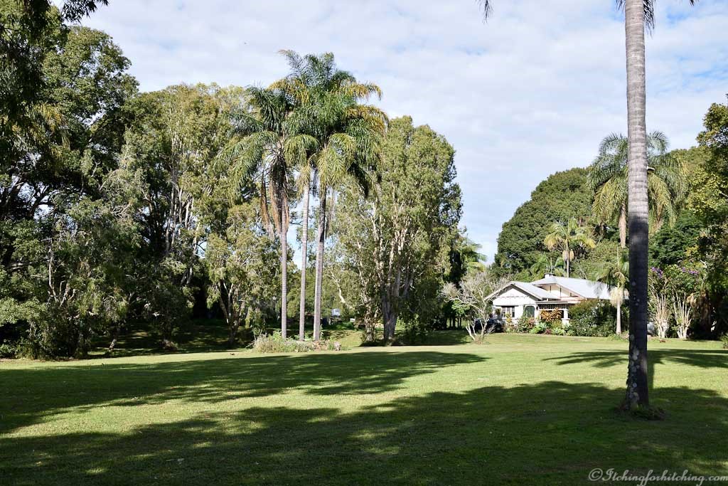 The road to Lismore follows the ridge line and there are expansive views of macadamia farms on either side. Lismore is a total surprise to us. Parking the car in an ordinary street and feeling a little dejected we set off for our walk. We try to have a walk in each largish town to prevent ‘spreading arse’ syndrome that is common with folk of our age. This usually means that a 300 – 400 km drive includes a 3 – 4 km walk. Back to Lismore. The town is surrounded by hills, has an enormous Catholic Church complex, several other large churches, a three storey Conservatorium of music, street buskers, a post office topped with a whimsical bell tower and a pie cart. Yes, a pie cart. We succumb to a duck and mushroom pie on the footpath under the trees. What? It’s not lunchtime? Too bad these are seriously good pastries.