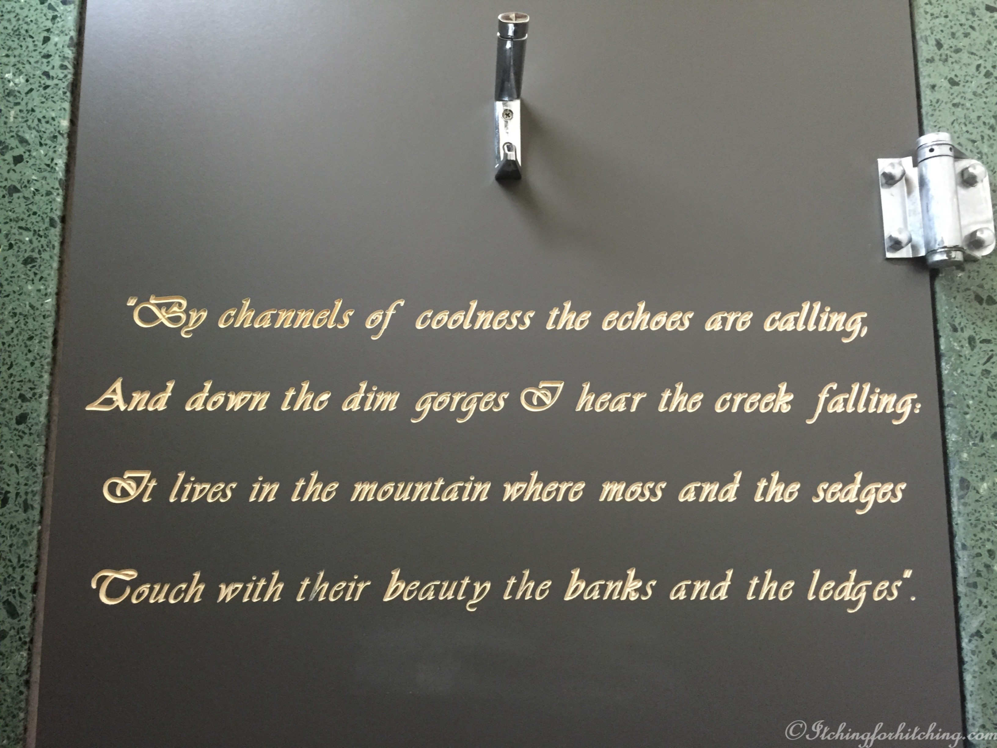 Stopping for a bite to eat in Gunnedah it is uplifting to find poetry on the back of the public toilet doors. Yes, you can even choose your poet as each door is named. Why the poetry, well Dorothea Mackellar of ‘My Country’ fame spent a lot of time in this town, her family once owned properties here.