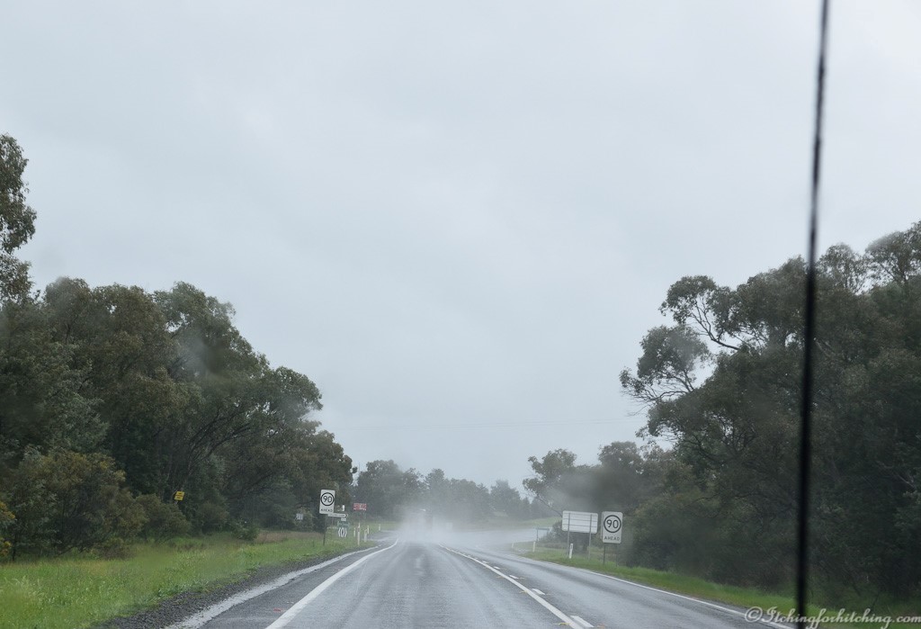 Day 107 Wednesday 24/8/2016, Coonabarabran to West Wyalong, constant rain 10 – 13 degrees