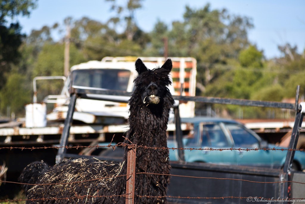 A perfectly pleasant caravanning afternoon is spent wandering the town. We meet an alpaca whose job is to guard a what we take to be a wrecker’s yard or maybe that of an avid collector? We marvel at the flattened grey mouse bodies on the bitumen, the recent mouse plague has obviously been through here. We chat with the volunteers who are planting shrubs at the well-appointed sports ground and marvel at the fact that one can buy a fully renovated and attractive home for a mere $220,000. As we admire the grand proportions of the School of Arts, a chap wanders up and launches into a long discussion about his prostate cancer treatment at the local hospital. They are a friendly bunch here, but I really don’t need to know such intimate details about their health. Folks are falling out of the pub with big smiles and boxes of pizzas so we round off the afternoon with a wine in the pub’s sunny beer garden. Have you ever wondered about that expression ‘beer garden’ because it can be many things? For most country pubs Beer Backyard is probably more apt especially as we sit contemplating the cost of upkeep of a crumbling pub of these dimensions, a patch of mowed lawn and a few straggling plants. The roses are a nice touch and yes, the pub is a bit of a beaut.