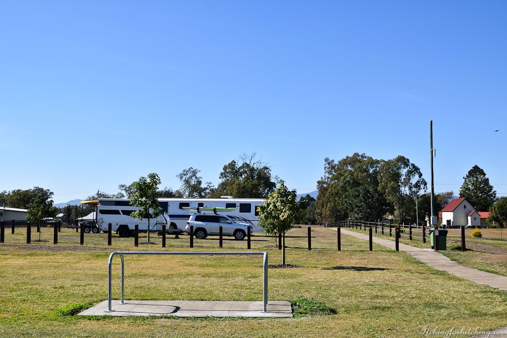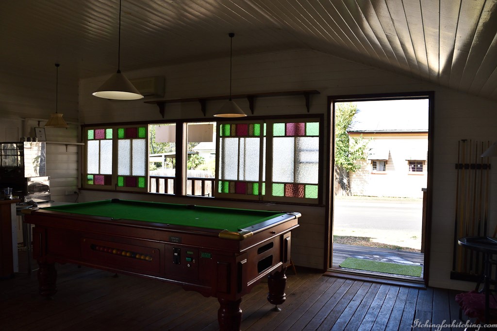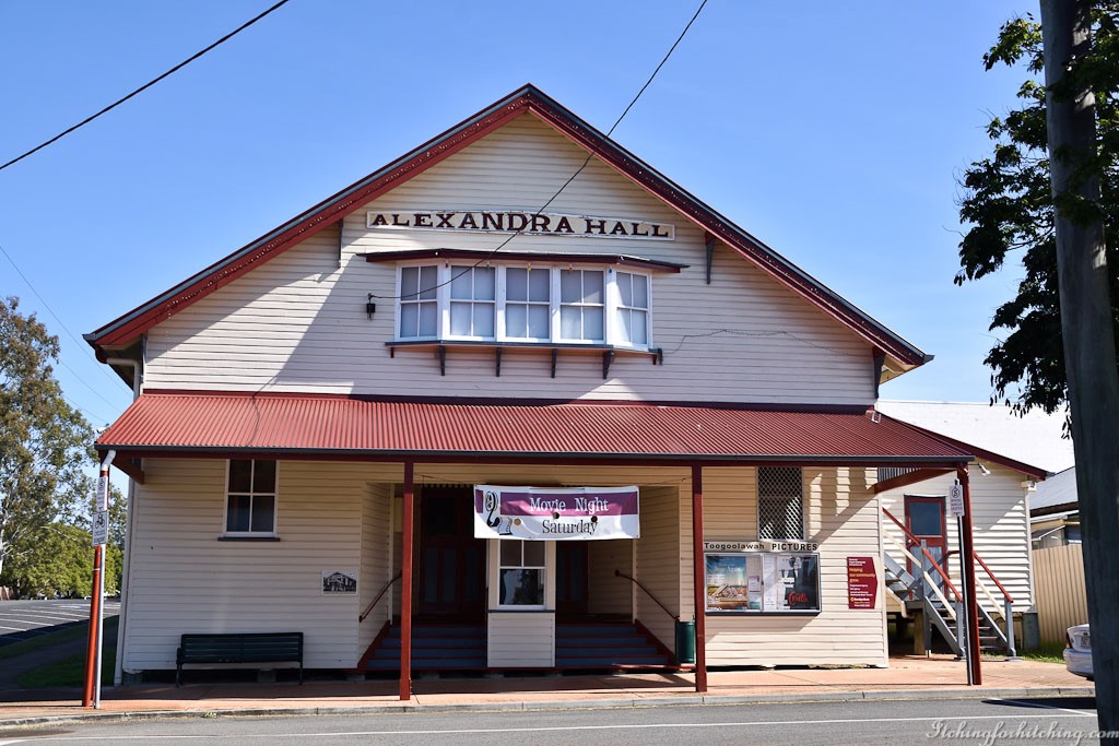 When the fog lifts we drive over to Toogoolawah to see what is there. We are pleasantly surprised. About the same size as Esk it is just as busy with a Main Street full of cars and shoppers. Of interest to folk like us, there’s a neat RV camp on the site of the old railway station and handy to the shops. There’s an old wooden picture theatre that is brightly painted and full of character and looks to be still in operation. We learn that it survived ‘the big fire’ of 1926 only to be burnt down in 1930 before being rebuilt. We would like to know more about ‘the big fire’ which must have had a big effect on the town. There are 3 pubs in Toogoolawah, a host of old Queenslanders (I’m talking houses not residents) and a wooden church built in Bavarian style that has buttresses which were added after a severe storm. We leave scratching our heads as to what led to the choice of a Bavarian church, but it does look cute.