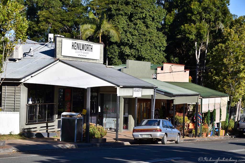 After the heavyweight breakfast we drive down to Yandina to buy pineapple jam, chocolate ginger and chocolate macadamias from Buderim Ginger and Nutworks*. We take the steep climb up to Mapleton and Montville but find that it’s far too busy to find a parking spot up on the narrow ridge. Not fussed about which road to take and not having the van to worry about we take the Obi Obi Road and notice a sign declaring it not suitable for caravans. Hmm it must be a little bit steep. Steep, there’s 5kms of winding and seriously steep downhill descent that is unmade. It would have been pretty if we’d been able to take our eyes off the road.
