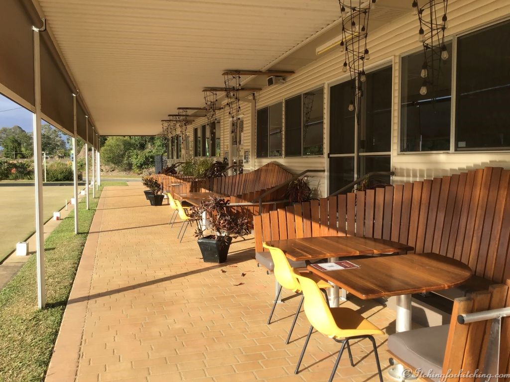 It takes about two minutes to walk the town and the weather feels much warmer than yesterday. Happy Hour tonight is drinks on the club veranda with a couple of locals and the other campers. It’s quite a treat sitting on these large wooden lounges and overlooking the greens and the bushland beyond.
