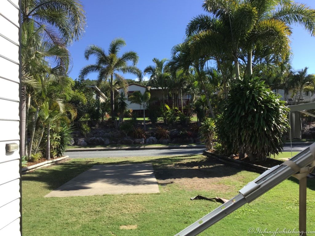 We reach Mulambin and NRMA Capricorn Resort. We’ve got a good site just behind the one we had two years ago. We have a concrete slab, plenty of lawn and gardens either side of us. Like all good parks it’s enough to inspire me to give Priscilla a damn good scrub.