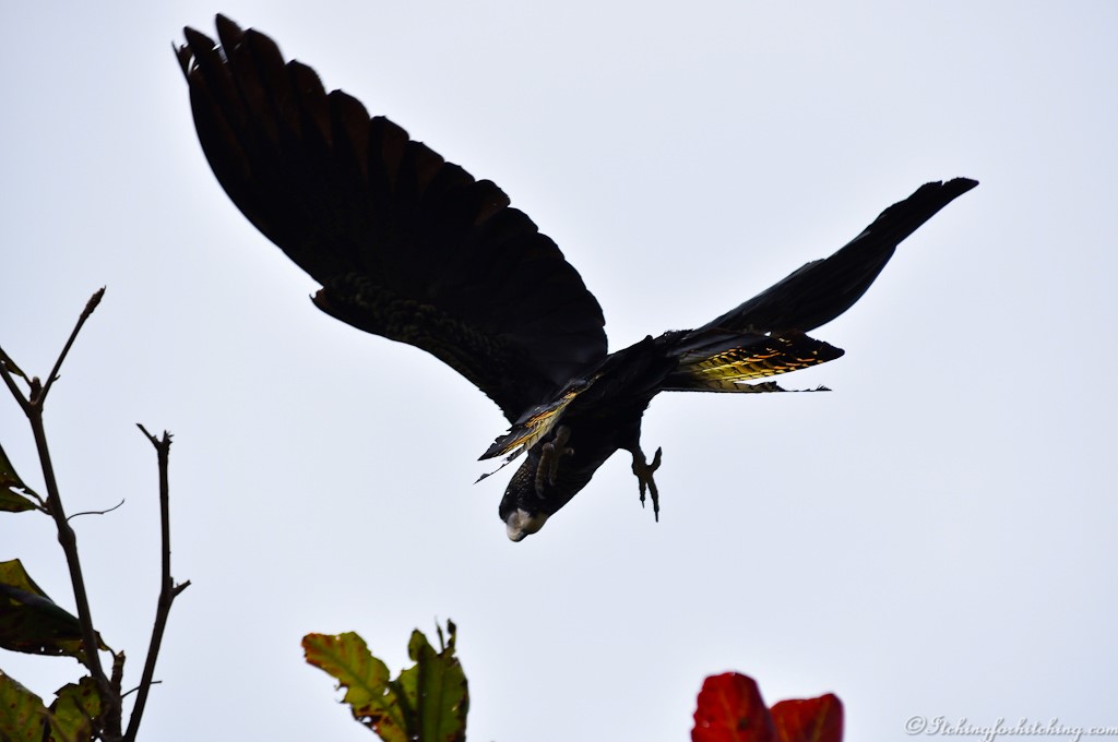 Showers are intermittent but regardless we plan an outdoor dinner. A walk on the beach is worthwhile, not for the stiff breeze but for the black cockatoos I find munching the fruit of the Beach Almonds.