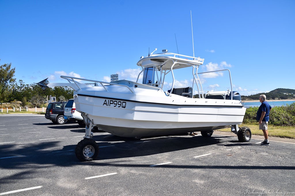 Down on the beach a man cheerily waves to me as he’s driving his boat along the sand. Yep, the boat is called Sealegs and it has retractable wheels. Pretty soon he has a bunch of curious onlookers.