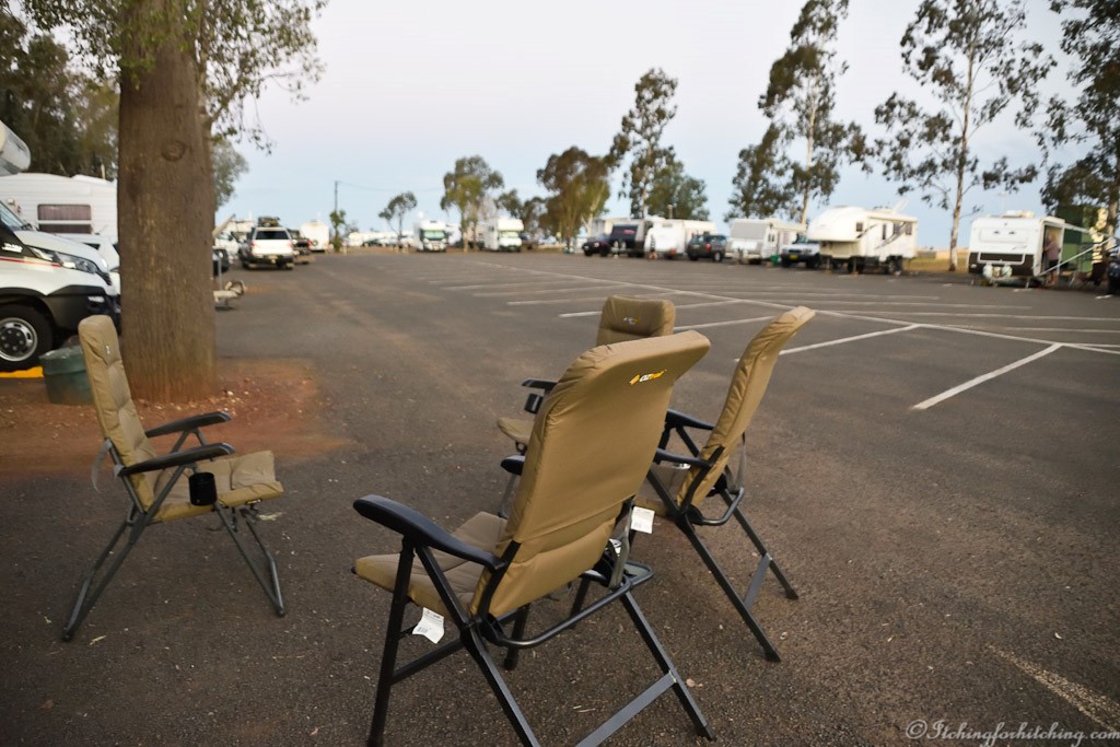 Elle shoves a very large chicken into the air fryer and while it does its thing we wander over to the clubrooms for a happy hour drink. We meet a cheeky bunch of folks who’ve just come down from Lawn Hill National Park up in the Gulf. Damn, that’s a place we’ve never managed to get to. The view from the clubrooms here is wondrous, you can’t see very far but you know that what’s beyond that rise is more of the same for miles. I know, that doesn’t make much sense, but the view here is more of a feeling than an actual view.