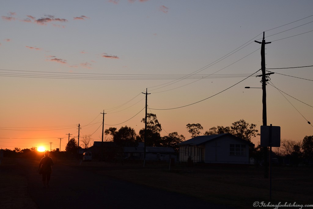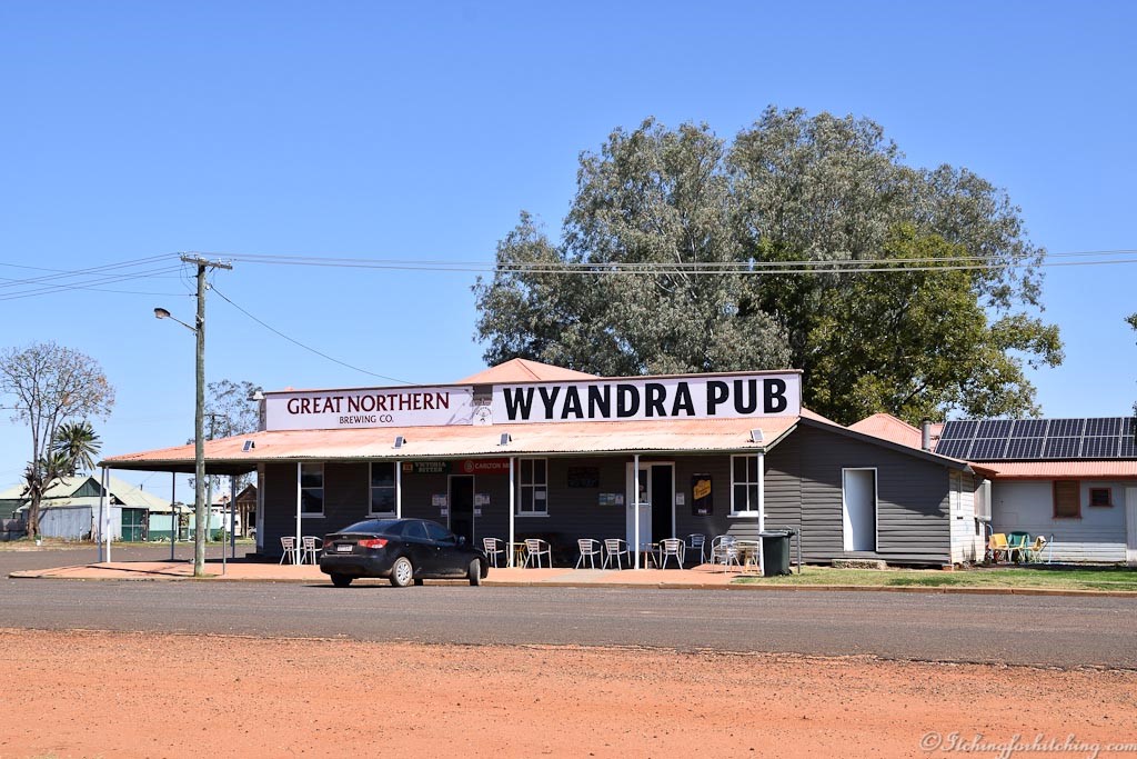 Wyandra has a pub, a quirky caravan park, a church, post office and school. The freedom camp is situated on the old cricket pitch just beyond the school. The locals have built a comfortable shelter with toilets and showers, a BBQ, a patch of lawn, a well-built firepit, clothes line and firewood. Elle has washing on the clothesline in a flash while I find a lizard in the dunny. Some of the houses in town have seen better days and of these the church is quite possibly the best, though on closer inspection seems to have been built from borrowed bits. This is a town with character.