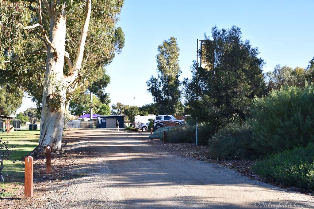 Roughly following the Murray River upstream and travelling southeast along the Murray Valley Highway we find Leitchville. This small town is in an area of dairy farming, tomato growing and the big surprise cotton. Leitchville has a population of 558 (at the 2016 census) and boy have they been busy. They’ve created a pretty little RV Stopover to capture the likes of caravanners like us. We’ve arrived on a miserable wet May day that is gripped in a cold snap to find a garden setting with pleasant parking bays, toilets, showers and a water tap for $8 (May 2021) a night.