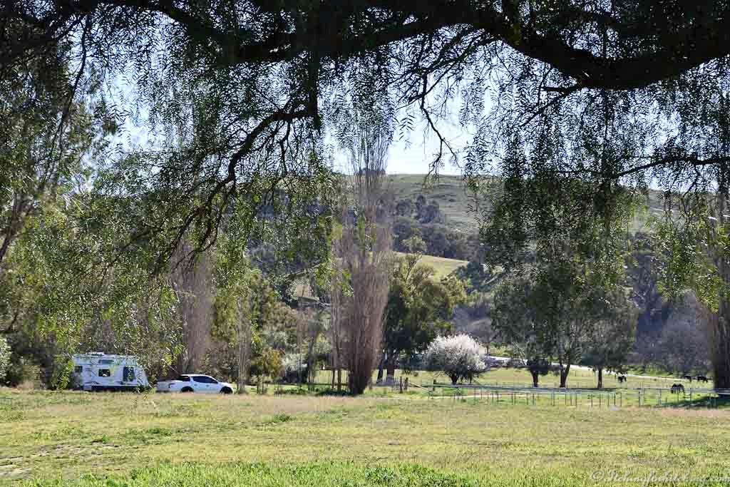 In years gone by the Hume Highway (between Sydney and Melbourne) would drop down into this pretty town then climb steeply away, there were fleeting glimpses of riverside poplars and we were off again hurrying by, muttering “gee that looked pretty”. Nowadays with the highway up on the hills, Jugiong has become the perfect spot for caravanners and freedom campers to have a peaceful break from the frenetic pace of the Hume. Jugiong, on the Murrumbidgee River, has a population 222 (2016 census) and is situated 40kms north of Gundagai. Which places it 337 kms south of Sydney and an easy drive of 121 kms for those in Canberra wanting a leisurely lunch in the countryside.