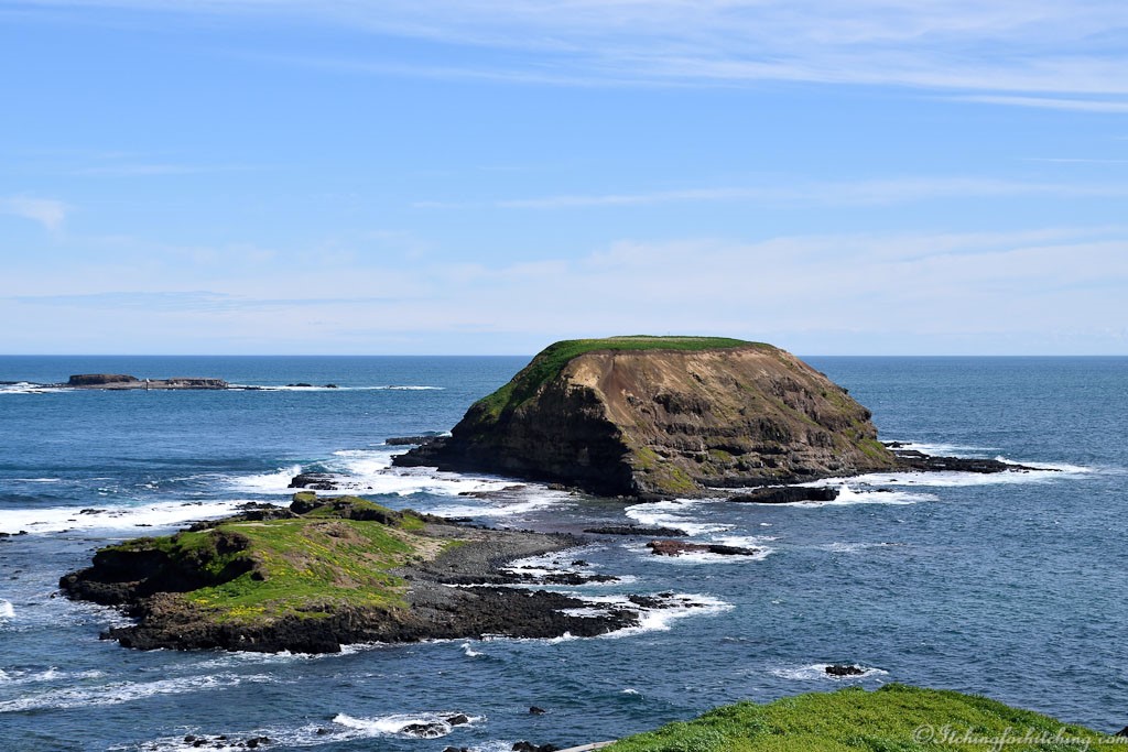 Phillip Island at the entrance of Western Port (Bay) has a history of fishing, sealing and chicory production. Today it is cattle grazing and tourism. The population is around 12,000 and it is only 140kms south of Melbourne via the San Remo bridge. Thus, the island is a popular summer destination for Melbourne families as holiday houses and surf beaches abound. International tourists are attracted to the Motorcycle Grand Prix and the wildlife. The nightly march of the fairy penguins as they surf in with the waves and waddle up the beach to their burrows. The fur seals that are easy to spot lolling about on Seal Rocks and koalas of course can be seen in the crooks of the gums.