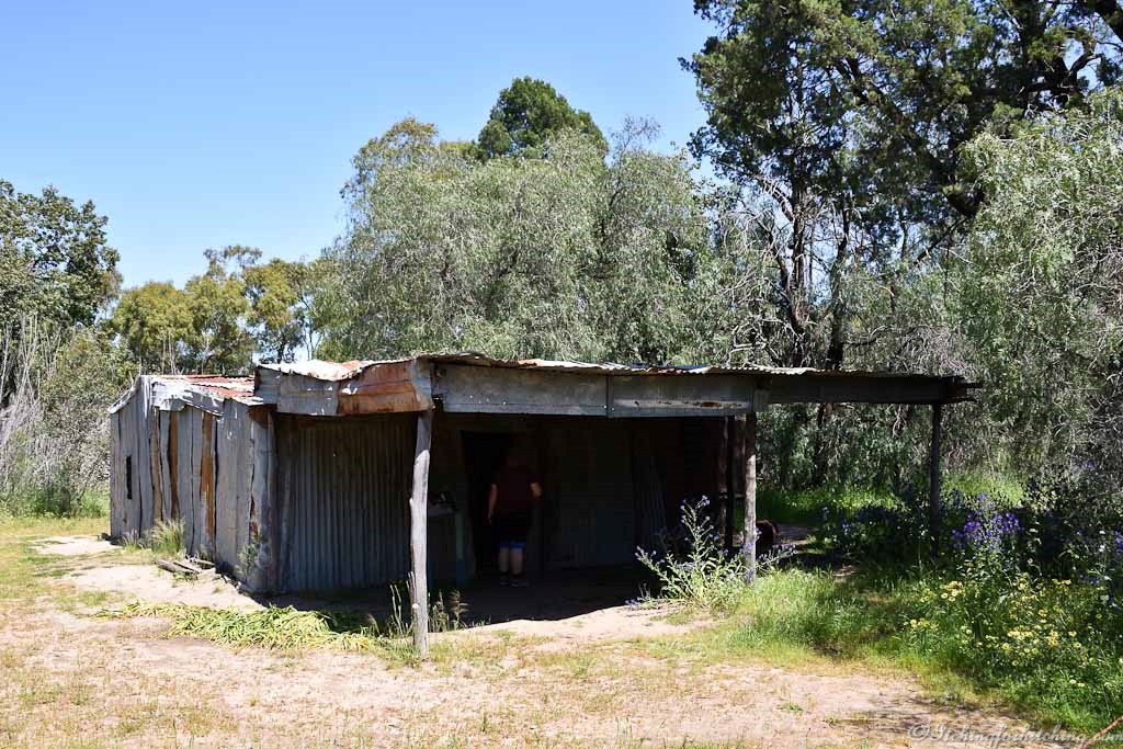 The house and sheds were built from flattened corrugated iron. Why were the sheets flattened? To go further. Dams and wells were dug and sunk by hand.