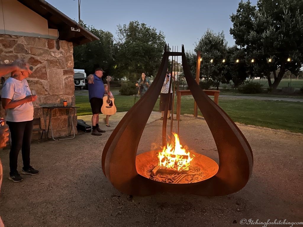 There is a photoshoot going on in the caravan park to promote their new pod cabins and the managers ask us to pop over to the fire pit at 9:00pm to provide an audience for the promotional video. We sober ourselves up and join the other campers for 5 minutes of smiles and applause for manager Ty who is pretending to play the guitar. Bloody hell, I wish I’d brought the uke at least they’d have had something to laugh at.