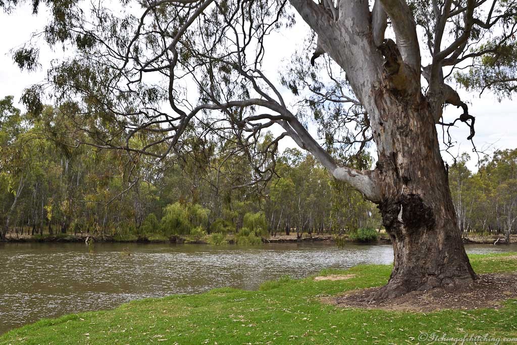 It’s a short drive over to Rutherglen, about 17Kms and we can’t believe how quiet the town is for a Saturday. There are no tourists, except us. We have a coffee at the bakery, pick up a few things at the supermarket, like scissors, we lost ours at the last muster and a couple of pies at the legendary Parker Pies. We take the long way home through vineyards and Howlong on the Murray.