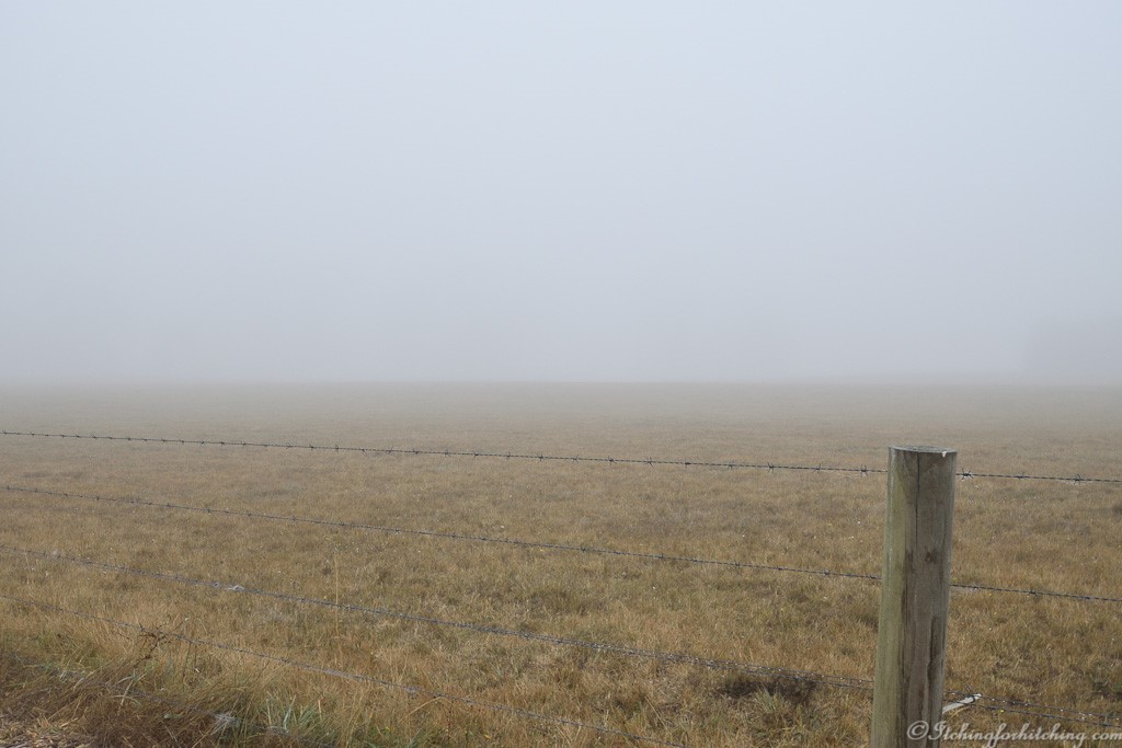 We wake to a quiet foggy morning. We park in the main street and the lollipop lady kindly stops the traffic (The Prado’s) so I can cross to Café 3869 for a coffee. And good coffee it is as they roast their own beans. It seems that all the cars that were last night parked outside the pub are now outside the café and primary school.