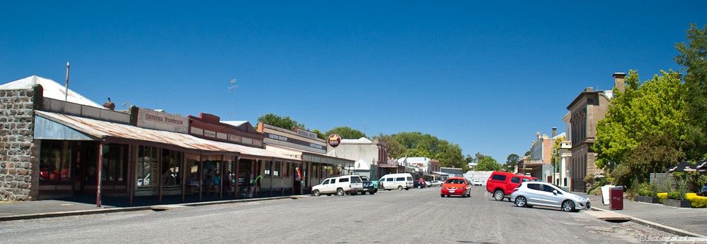 2022 Note: Originally settled as a sheep station, Victoria’s first reported gold strike was in Clunes in 1851. Clunes at the 2016 census had a population of 1728. Today Clunes is known for its annual Booktown Festival. Popular too, is the little changed Fraser Street which has become well known as a location for movie makers.