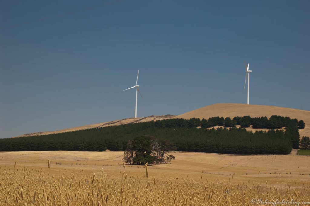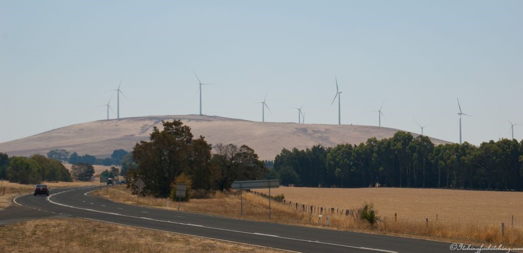 Clunes is enveloped in a haze of bushfire smoke. In the afternoon we go for a drive and find ourselves at the source of the smoke, a now extinguished paddock at Waubra. We continue and marvel at the states’ largest wind farm, each hill has numerous wind turbines and there are 125 in all. We stumble upon the Talbot showgrounds, and it looks like camping is available, this is good to know.
