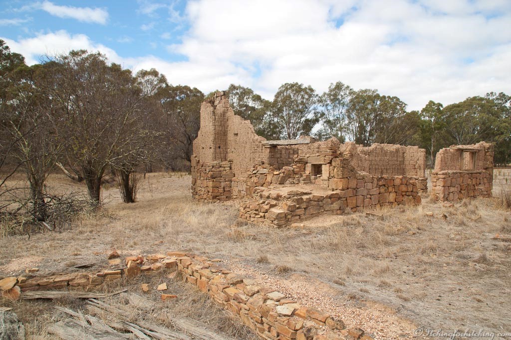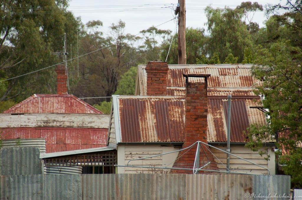 An early daybreak walk around town frightens the grazing kangaroos and reveals the burnt-out ruins of the Wesleyan Methodist Church. A handsome structure, it was built in 1865 and destroyed by fire in 2000.