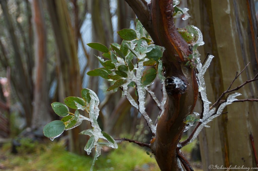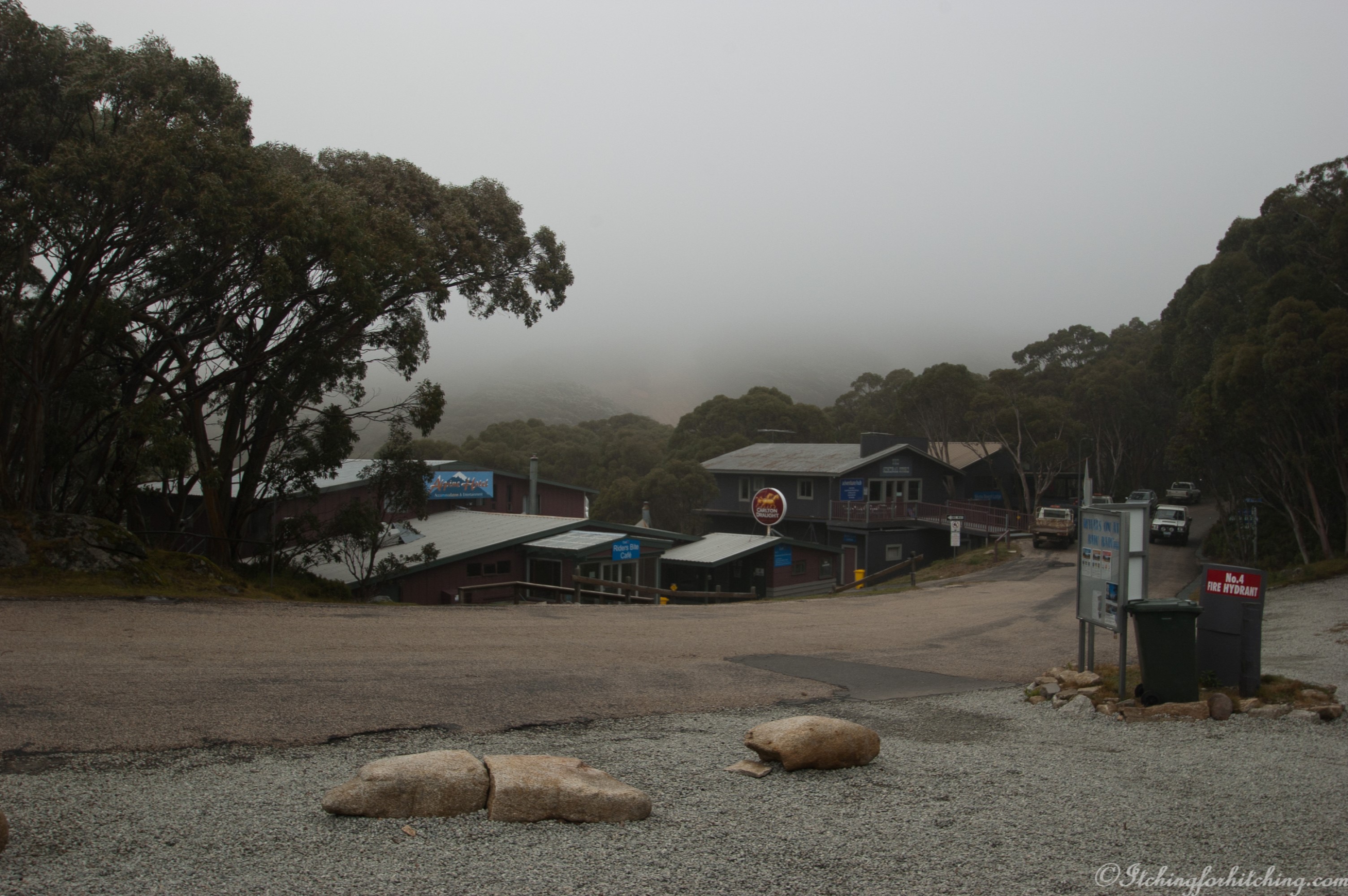 In the spirit of a chilly morning. We drive up through the forest to Mt Baw Baw. It is 4 degrees on the mountain and the resort is draped in low cloud, we arrive unsure that anything will be open at this time of year. It’s a pleasure to find that The Village Restaurant is indeed open, cosy, and warm and they dish up a good parma. There is a wall of windows overlooking the valley below but sadly all we can see is mist. Outside the only sound is ice slipping off the leaves of the snow gums and breaking on the ground, yes, it is cold.