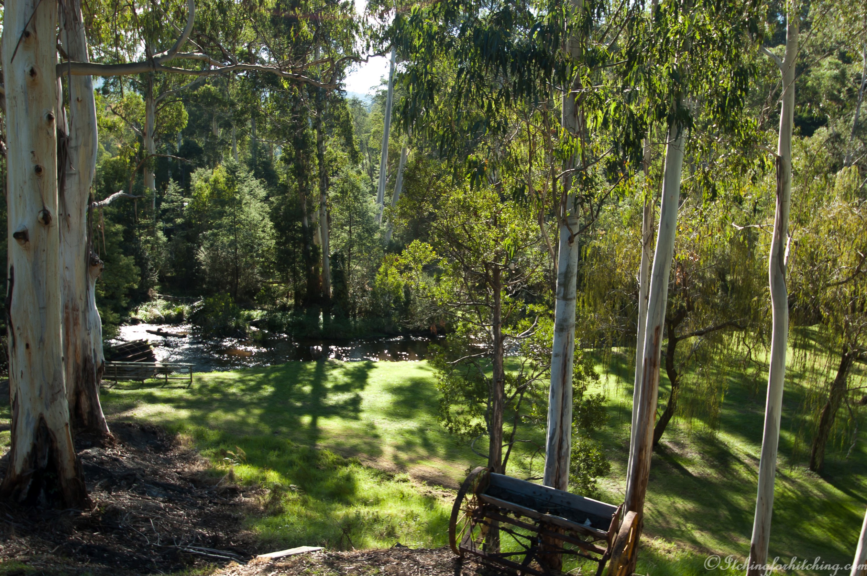 The morning is cold and brisk but beautiful. After more chilly ablutions in the concrete box we drive into Warragul for a bit of shopping as M has left their caravan heater at home. We return via Drouin and the Noojee Hotel for a burger. In need of more warming firewood we leap from the car at every chance and throw a few branches in the back of the jeep. Back at camp M unpacks the heater only to find that the tall modern style of heater is not a heater at all but a fan! Fat lot of good that’ll be tonight.
