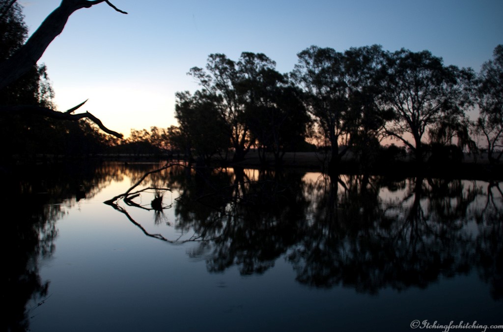 We wake to the screech of cockatoos and the smell of hot, dry bush. Which way is the river flowing? Who cares? It doesn’t matter. Emerald green willows are dipping in the water. Noisy galahs are chattering and every so often a water hen honks. It is so reminiscent of the Murray. The camping community is very friendly so we unhook and drive into town for a look around Elmore. It is 32degrees and the town is slow and sleepy. We drive on to Rochester and back.