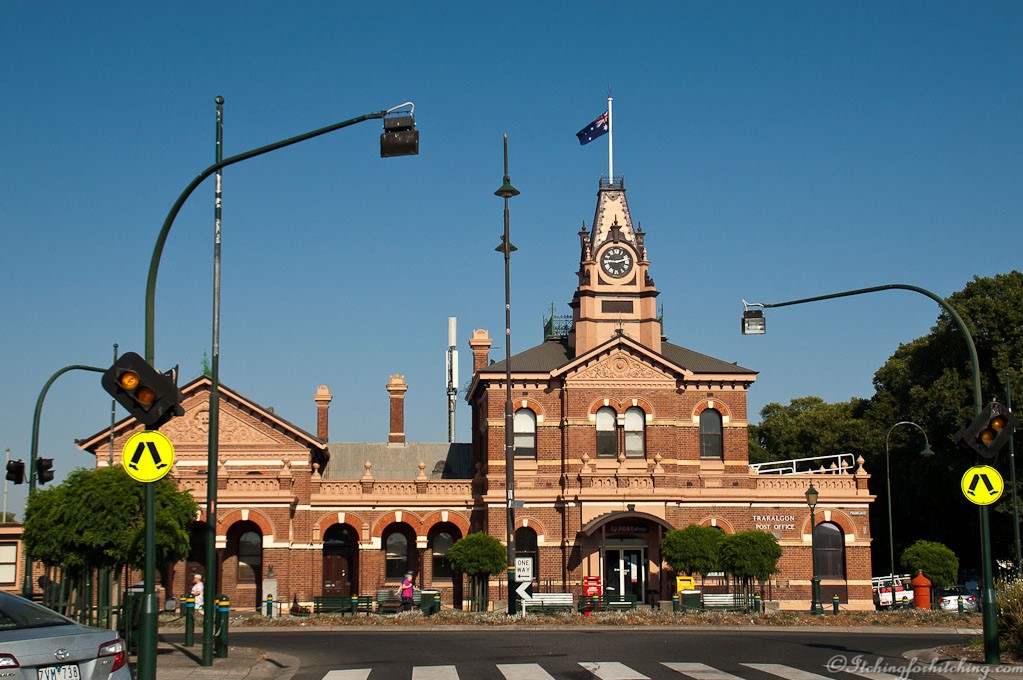 It was a quiet night, out in the bush. We drive up the ridge through rolling farmlands to Poowong and on to Drouin where we pick up the Princes Highway. At Trafalgar we stop for breakfast and strike it lucky at a cafe called Obsession, the breakfast was creative and the coffee first rate.
