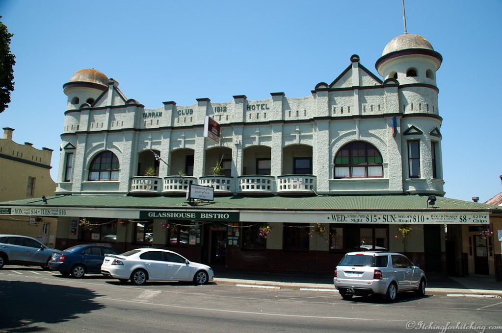 Exhausted, we decide that the best way to beat the heat is to go to a country pub for lunch. With T and T onboard we drive south to Yarram and have a very ordinary meal in Yarram Club Hotel. Everything comes with chips, no vegies, no salad nothing else. The pub is delightfully cool, the beer ice cold, the company hilarious and it is an interesting old building, so it is easy to forget how hot it is outside. The town is very quiet, no doubt everyone is indoors with the air conditioning on.