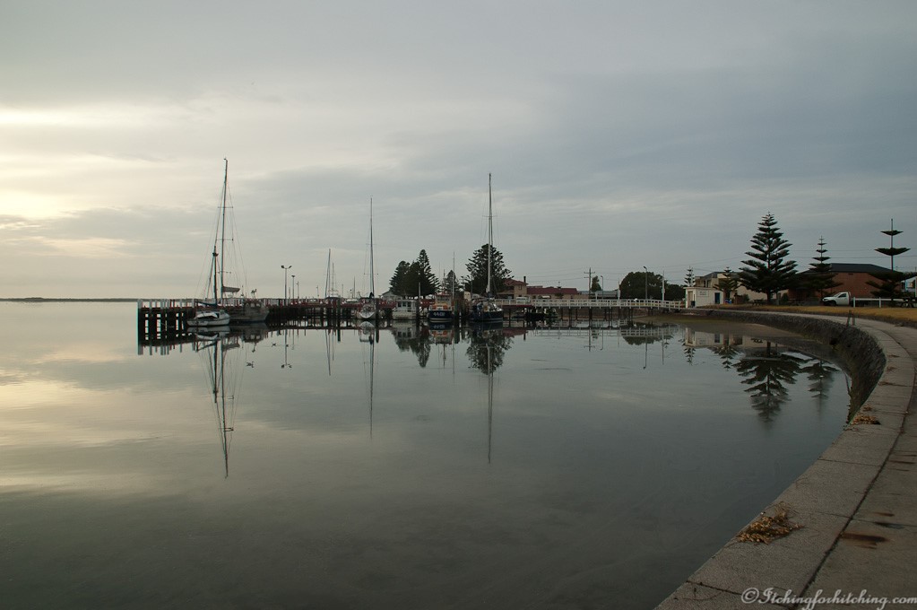 We are sad to leave this delightful little town, but it is a 24hour park. We say goodbye to M & E and head to Port Welshpool. What there is left of Port Welshpool is looking tired and sad now that the Tasmanian ferry service is no longer here. There is only a pub and a store. The wharf is busy with professional fishermen.