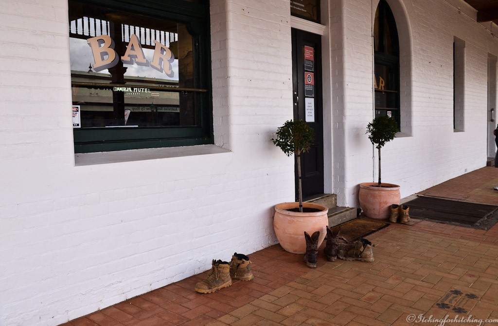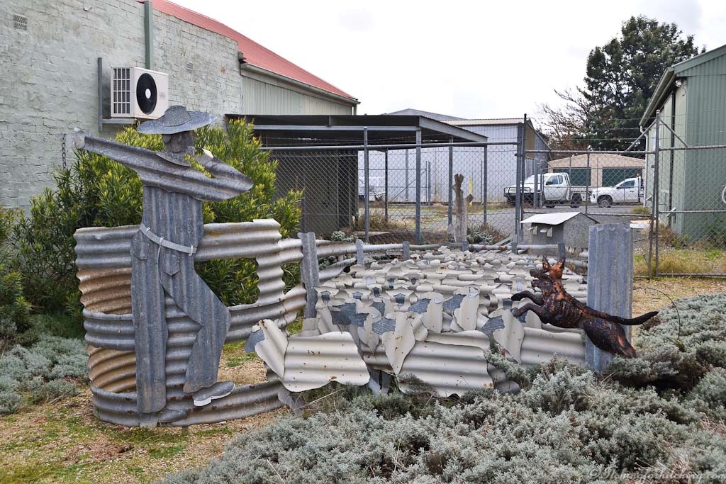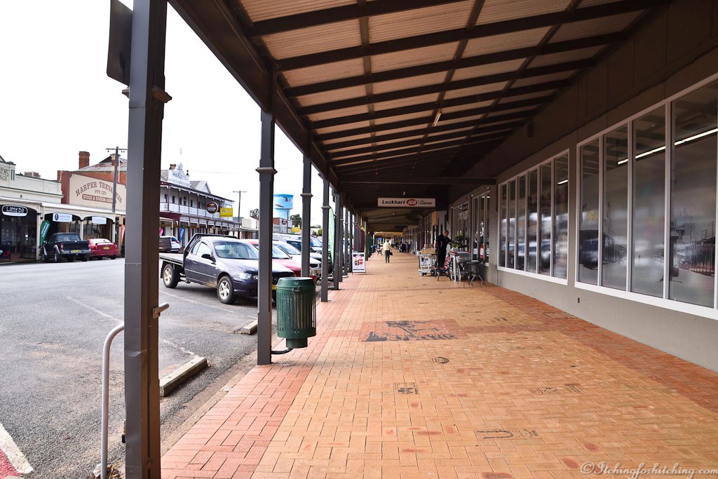 The town of Lockhart is a reasonable size with a population of around 3000. There are wide verandahs running down both sides of the Main Street. There is a large museum at the information centre and a good butcher and supermarket. This is a town that is out to attract caravanners and there is plenty to look at. They hold an annual sculpture competition and the results can be seen dotted about town. Under the ample verandahs, the wide footpaths have been bricked and the bricks embossed with stories of the families who have made the town what it is today. Family trees, advertisements for bygone businesses. It is easy to pass the time reading about these folk and their exploits.