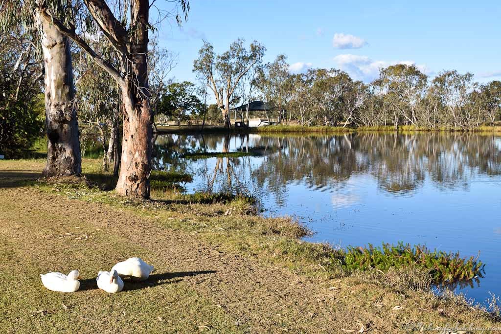 It’s a warm morning and Woody is up early to do the washing in the little garden shed. While the washing dries, we all sit around reading in the sun. It’s one of those places where people just wander about chatting. The quiet is broken when the lady manager bellows ”Who left the lid up?” Elle and I both look sheepish; we’ve forgotten the QLD rule of closing the toilet lid to keep the frogs out.