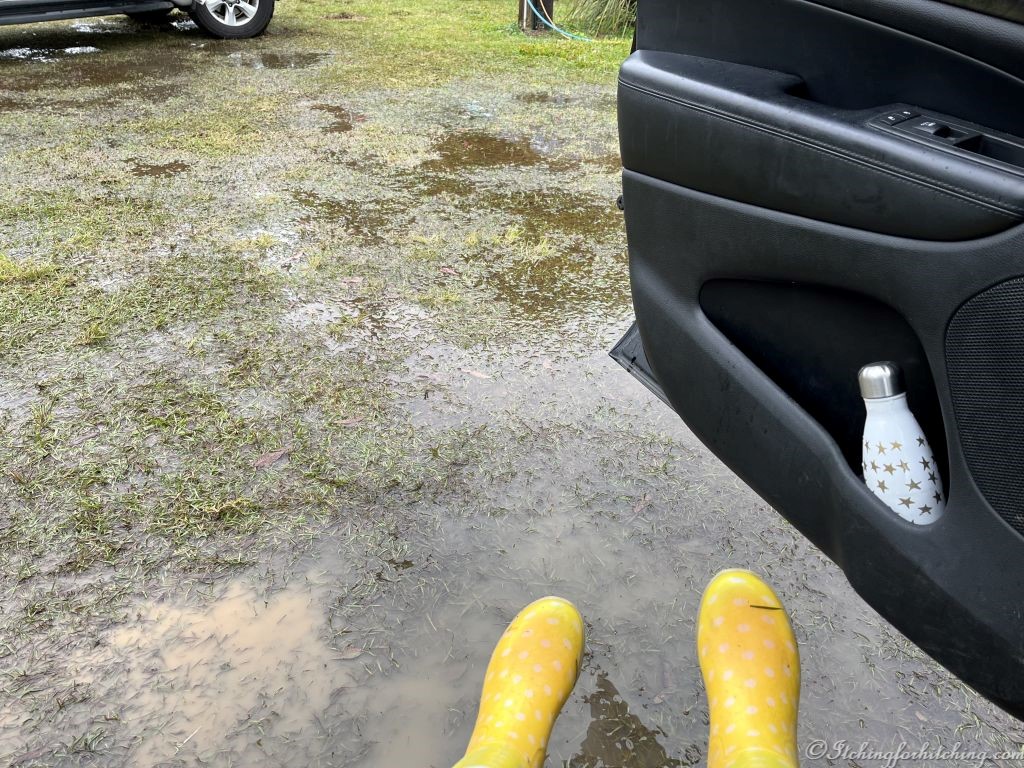 It rained all night and this morning the ground is all puddles making it hard for the boys to pack up. This rain band stretches way down the east coast and we’re only getting the lightest of it.