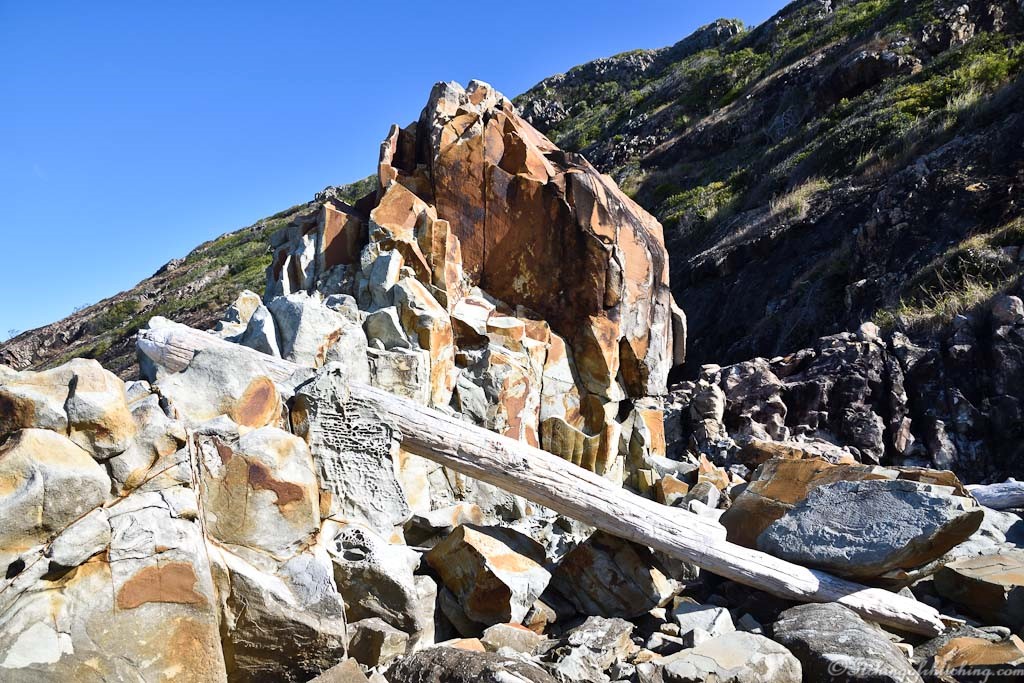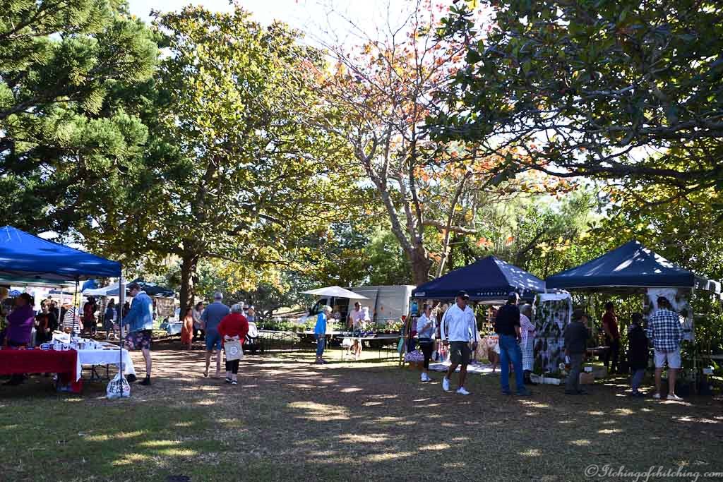 El Prado drives us down to the Emu Park monthly market under the trees in Bell Park. The location is superb with a curving expanse of beach on one side and the stalls shaded by hoop pines and beach almond trees. Woody leaves us to walk back as far as Kinka Beach. He’s really cranked the walking up a notch.