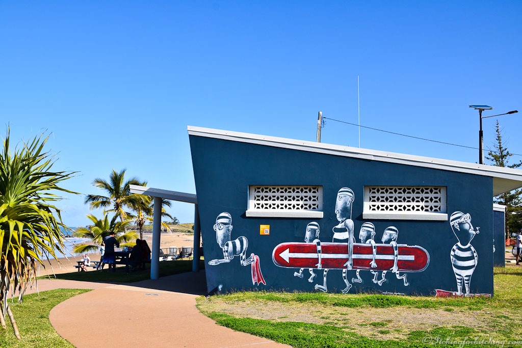 After lunch, we drive to Emu Park and walk from the bowls club to the point. The surf club has an inviting beach ‘hole in the wall’ cafe where coffees are served with mats so people can sit on the rolling lawns overlooking the beach. The caravan park in Emu Park has hundreds of uninvited guests. It seems that the bat colony that once lived in the mangroves around Ross creek in Yeppoon has moved house and they are now chattering noisily in a tree in the caravan park. Imagine arriving for your peaceful winter break in the sun to the noise and smell of a few hundred bats above your van. That would be enough to send you insane.