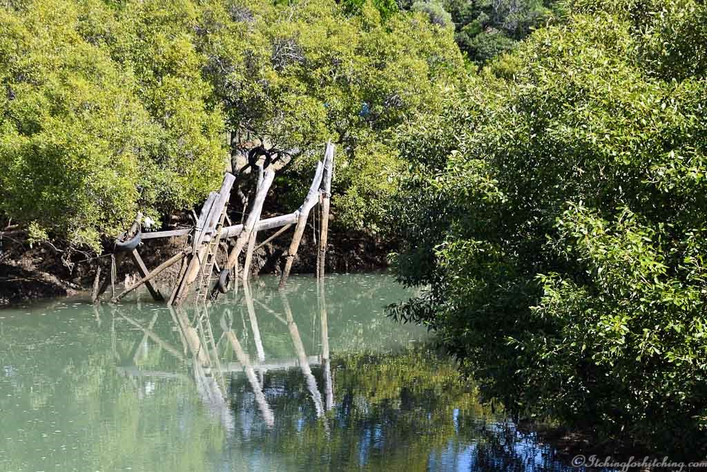 Woody walks into Yeppoon, he’s really getting into this walking caper and dropping weight. I take a coffee and drive into Yeppoon, setting up in the park beside Ross and Fig Tree Creeks to sketch the boats. It’s a tranquil spot and I’m not the only one enjoying it. At low tide, the boats in Ross Creek are high and dry. Fig Tree Creek meanders through thick mangroves and small wooden jetties are almost hidden in the undergrowth.