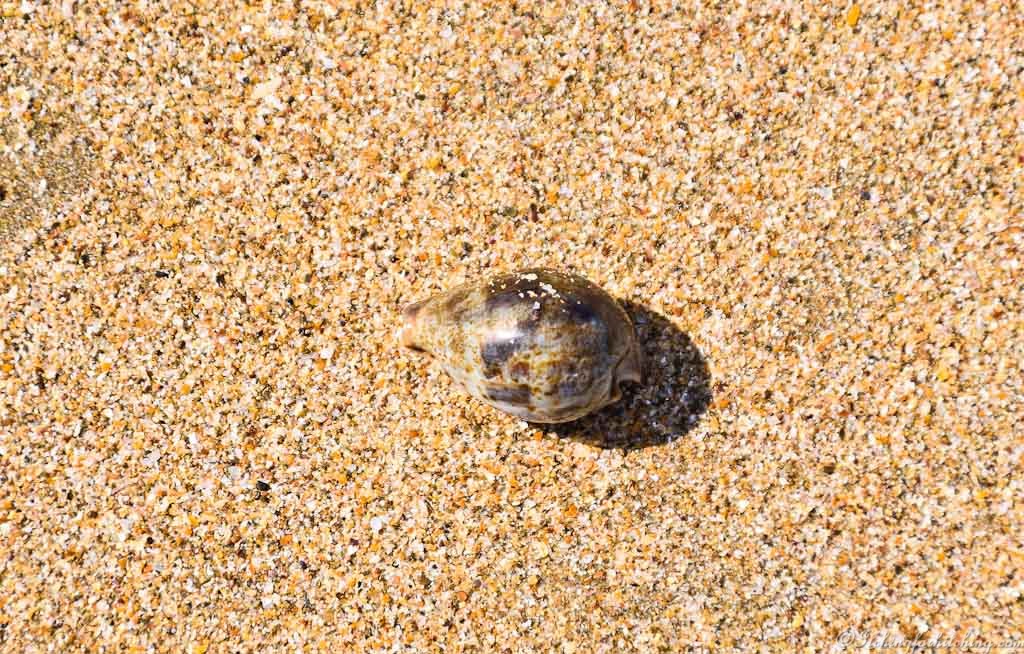 A walk on the beach is a beachcomber’s worst nightmare! I find a shiny cowrie with beautiful markings…but there is someone in there and I can’t tell if it is dead or alive so I hurl it back into the sea just in case. At least I got a photo.