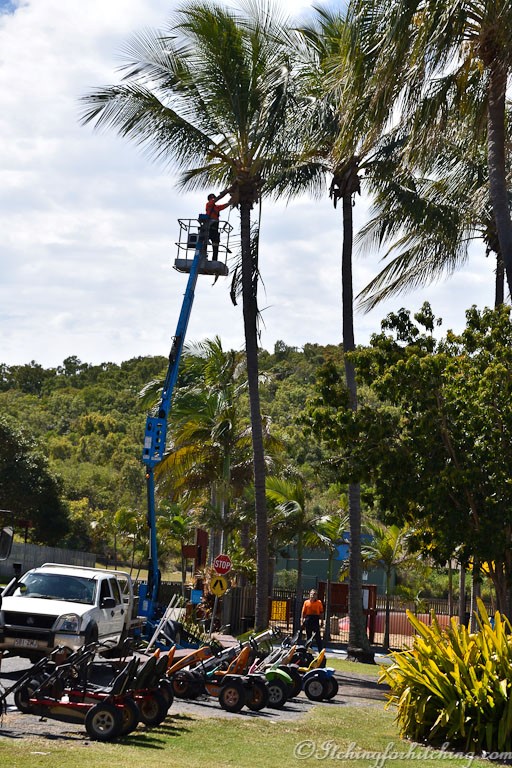 In the afternoon I take a walk on Mulambin Beach while Woody has a haircut. The Park is trimming the many palms and The Prado’s old site now looks very different.