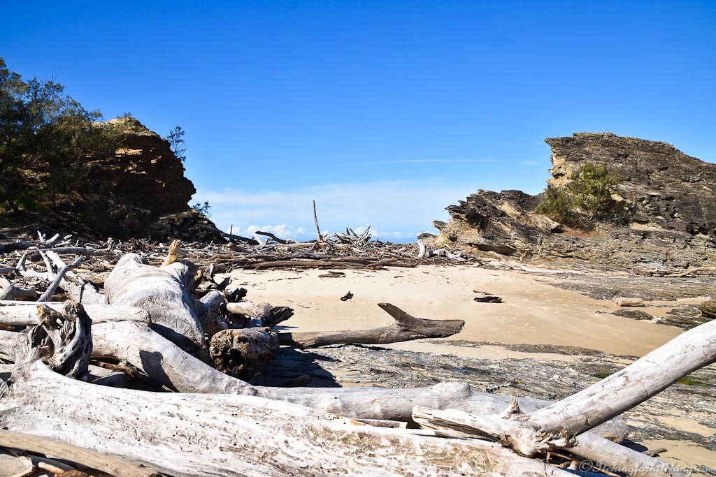 VeeWee has been at Nambucca Heads for a week and the weather has been wet. We set up camp and catch up on all the news. VeeWee tells us that she’s really had enough of hearing about the Queen. I innocently ask if she’s been ill again and VeeWee tells us that, much to our surprise, she died early this morning! In our haste to get away and listening to every squeak of the car we hadn’t turned on the TV or radio and had ignored the News breaks dinging on our phones. Nor had we noticed that the van opposite us is flying the Union Jack at half mast. Woody walks up the hill to town to buy a few groceries, VeeWee and I walk to Wellington Beach where tonnes of timber has been washed up on the shore by the heavy weather. It ranges from matchstick sized to huge trees.