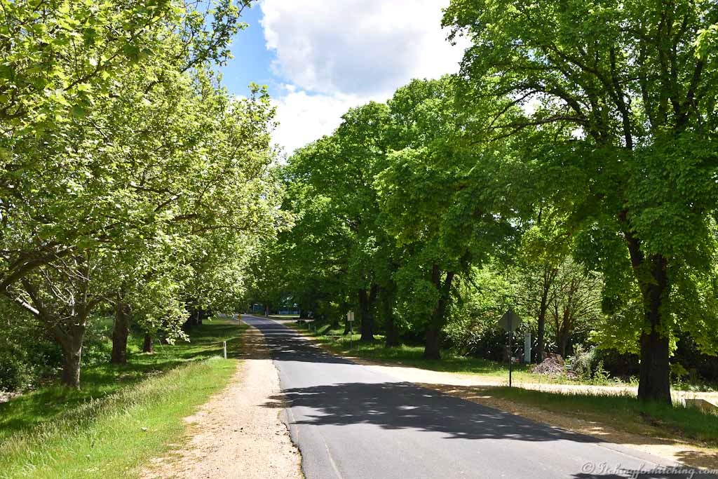 The road is flanked by an avenue of grand old elms and paddocks are lush from winter rain. Miner’s cottages which at first glance appear to be forgotten have been lovingly restored, as too an old boot maker’s premises. The boot makers is the only remaining shop from the gold rush heyday. We turn left over Fryers Creek passing the old Post Office and turning left again just beyond the Court House which is also now a charming home.