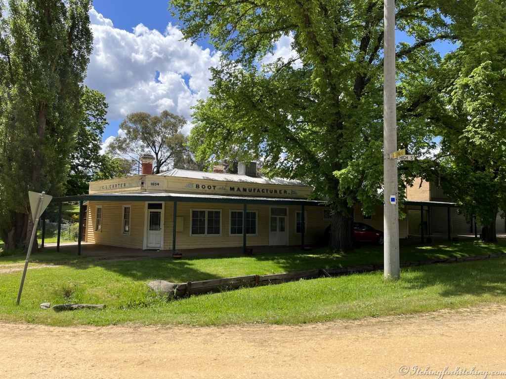 Across the stonework-lined Fryers Creek a wisteria climbs 30 metres or more up a tree. The avenue of elms showcases what must have been the heart of town. Where once there were 20,000 people a rabbit hops across a deserted High Street. Residents now number 228 (2016 Census) though I’d guess that quite a few of the miner’s cottages are country retreats as there is a feeling that a lot has been spent on ‘sensitive’ renovations behind closed doors. A Tesla in the driveway can be a bit of a dead giveaway.