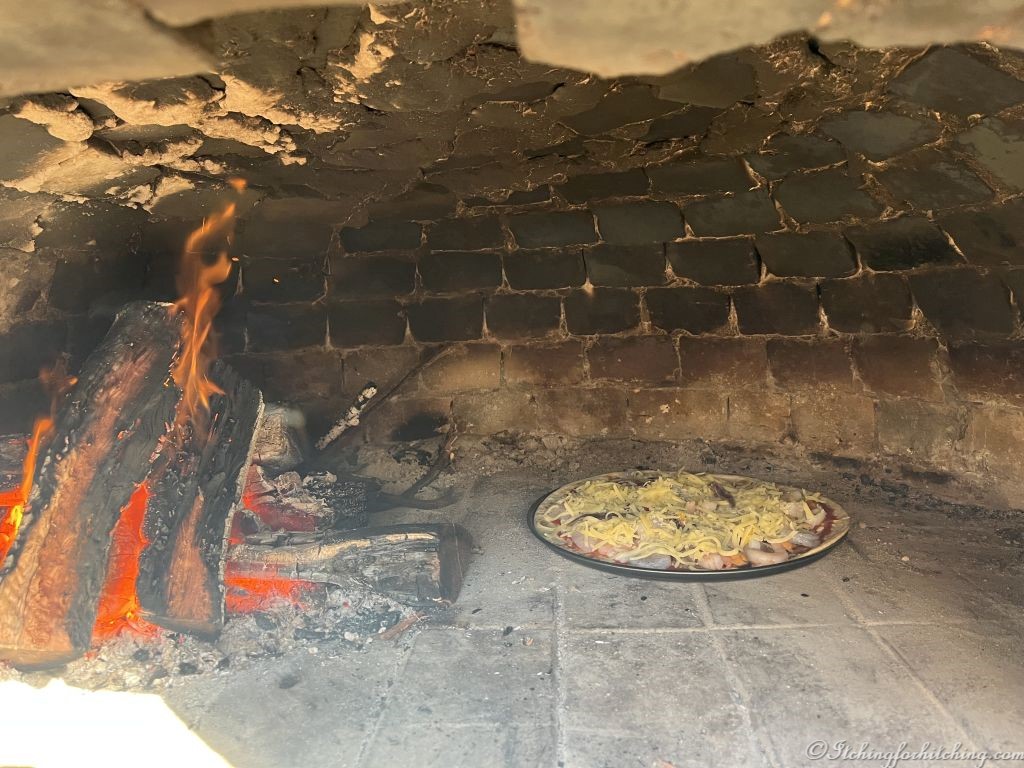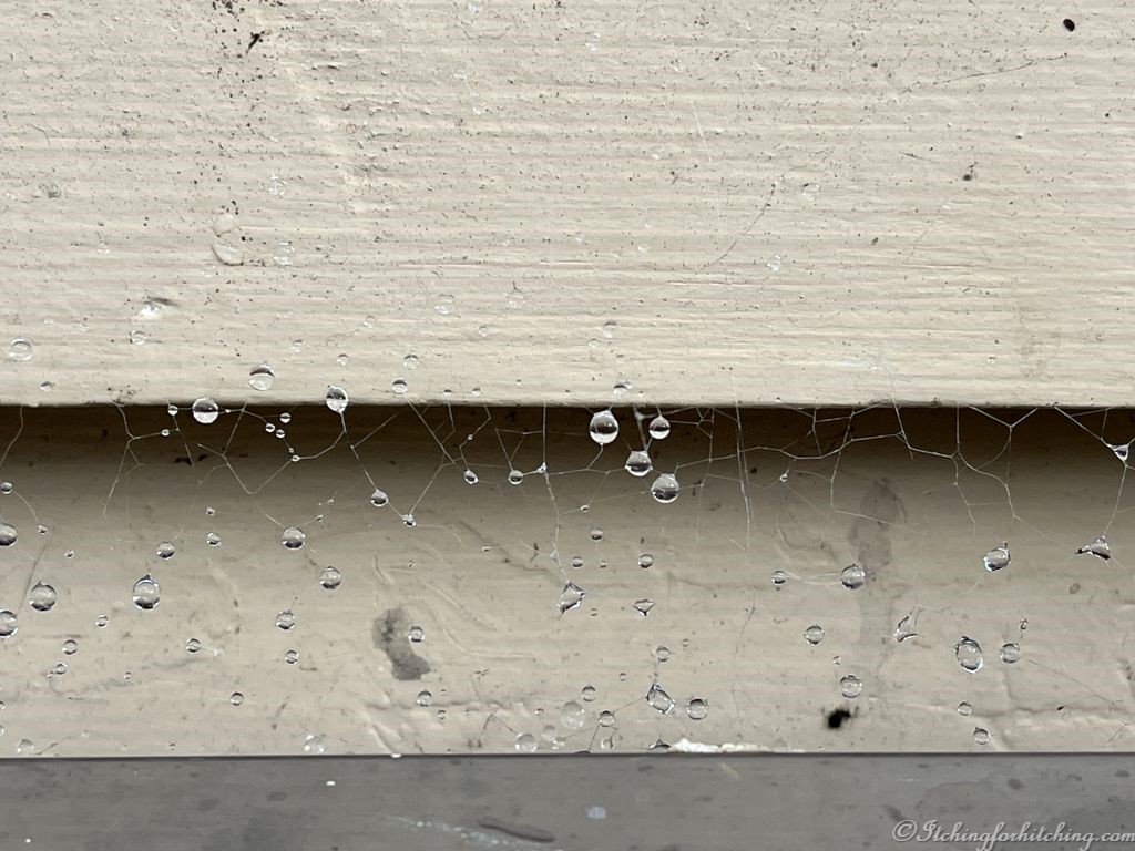 The boys fire up the pizza oven and pace about hoping for enough heat. None of us has used one of these before. A noisy storm moves quickly overhead with more thunder than rain. I stand at the outdoor sink washing dishes in the rain and can’t help but think how wonderful it is; warm air, cool raindrops, and the sparkle of raindrops caught in a spider’s web behind the sink. You don’t ‘feel’ weather like this when you are at home.