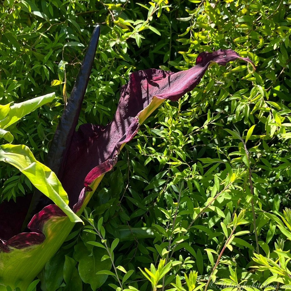 It’s warm enough to lunch outside in the sun. Woody spends the afternoon walking along Dutton Way and I drive into town to photograph Mac’s Hotel, the old Post Office, Customs House, the Town Hall, and in particular, the Curator’s Cottage at the Botanic Gardens. The gardens are interesting especially a foul-smelling bunch of ‘lilies’ called Amorphophallus Bulbifer. By their look and my rough translation of their Latin name, these plants appear to have been named for their proud appendages.