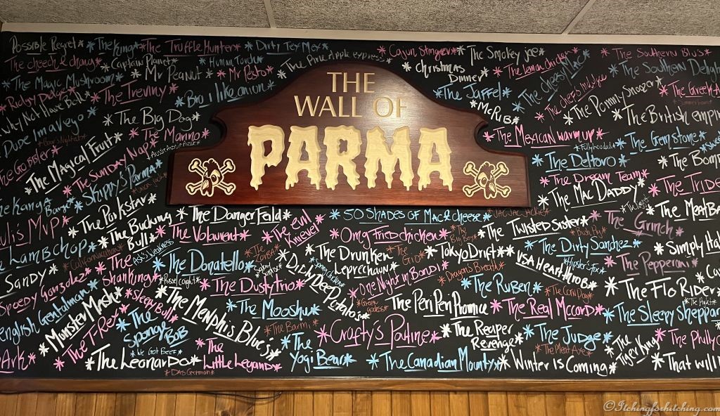 Parma – For those not familiar with the Aussie culinary delight known as Parma / Parmie / Schnitty depending on what state you are in, it’s usually a flattened chicken breast, crumbed, fried, and topped with a tomato sauce, melted cheese, and the pub specialties. It is usually served with a small salad and a lot of chips / French fries. A decent Parmie pretty well has you covered for all dietary food groups and calories required for the next 24 hours!