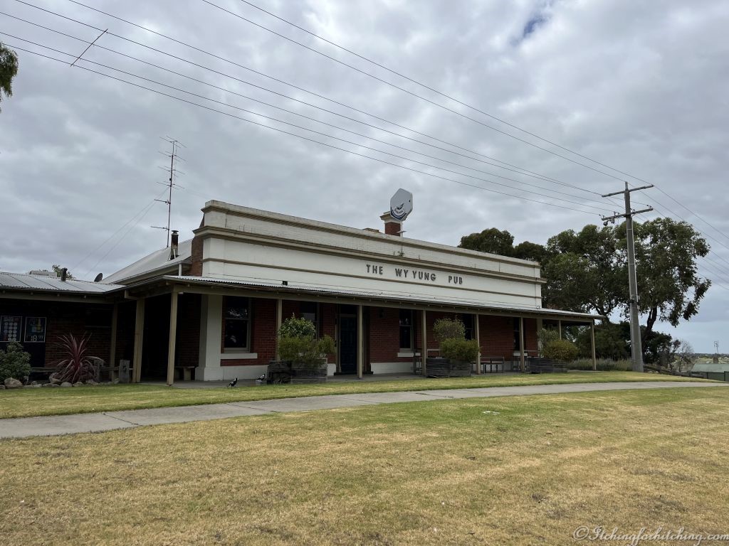 Later in the morning after showers and breakfast, we take a drive into Bairnsdale to pick up a few things. Our aerial winder has broken, and we get a replacement from the Jayco outlet. I reckon we’ve almost completely rebuilt this van by now. While there we nip across the river to the Wy Yung Pub as it may be worthwhile for a long lunch later in the week.