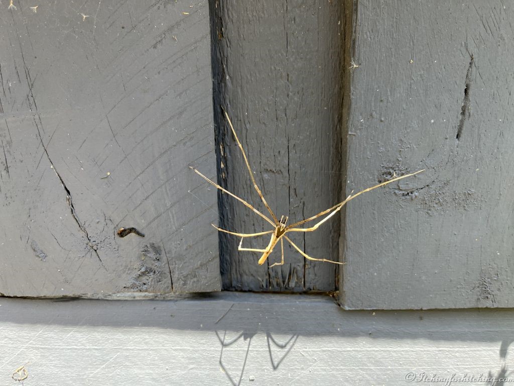 On a cheerier note, I was gardening the other day when I spotted this leggy fellow on the fence and way too close to my face. It turns out (thanks to the Vic Field Guide) that he’s a Net-casting spider (Deinopis sp).