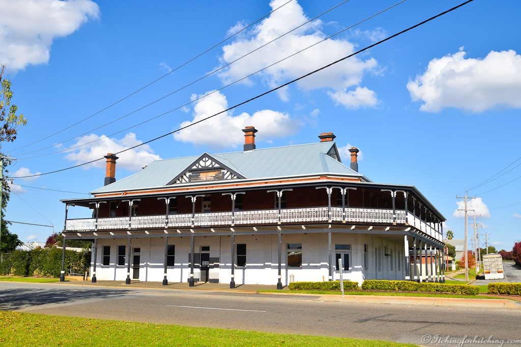 After lunch we walk another part of town. Coolamon has a population of about 2200. We’re amused that the veranda of the police station is adorned with Christmas icicle lights and the letters C and T have disappeared from the Court House building.