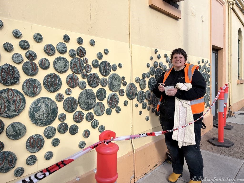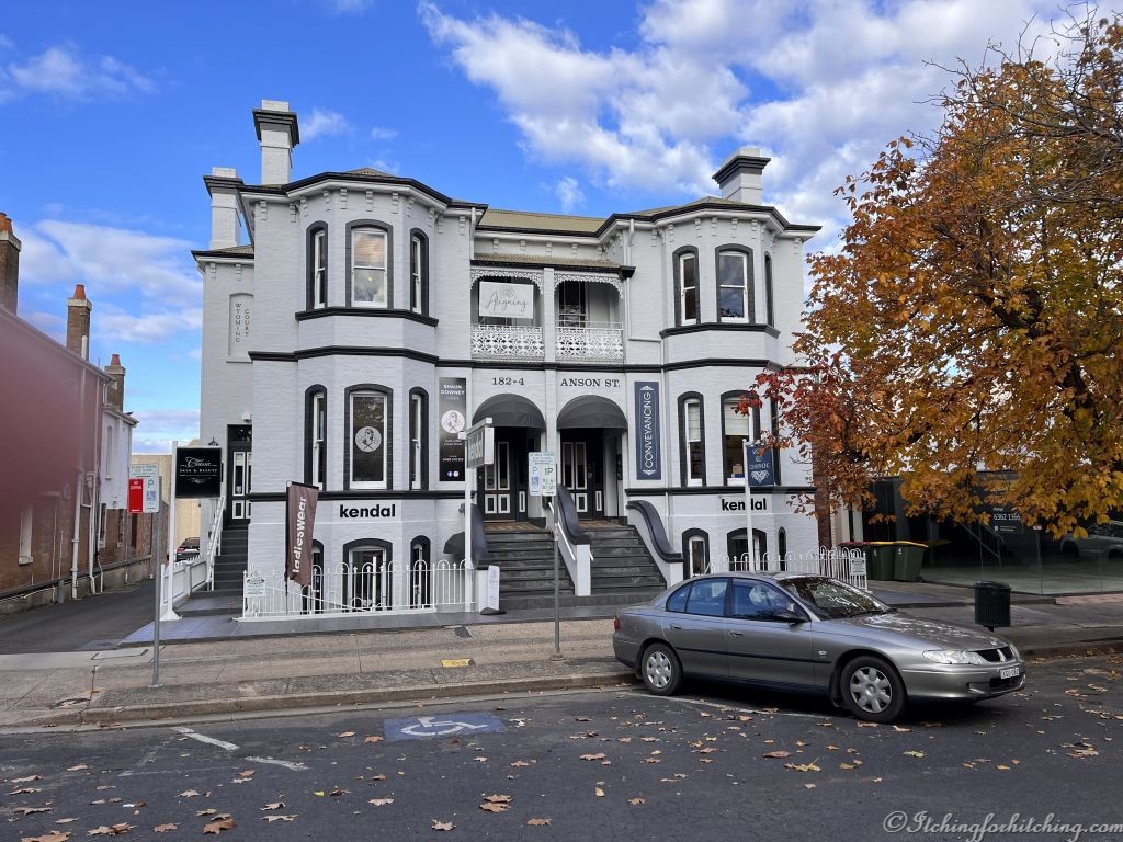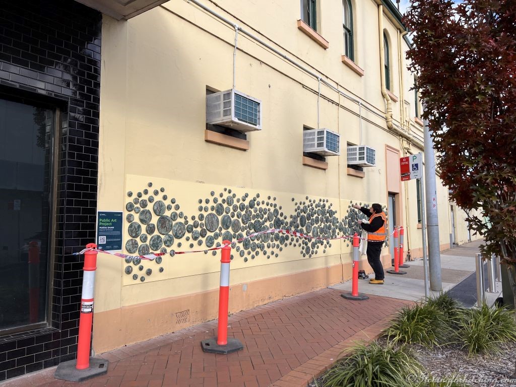 After lunch, Woody walks into town and I drive in a little later and pick him up. Walking around the CBD I meet Maria Walsh, an artist who is installing a tactile ceramic work on a laneway wall. Orange is the 13th largest town in NSW with a population of approx. 39,000 (2023 http://www.population.net.au). The city is a celebration of deciduous trees and we couldn’t be here at a better time. Reds, yellows, and browns and drifts of leaves on footpaths. The heart of town has many grand buildings and in the surrounding area, there has been a gradual transition from orchards to vineyards. With its cool climate, the town has become desirable and there’s a push to get the Sydney Bathurst bullet train extended out to Orange.