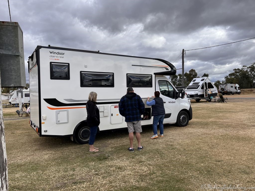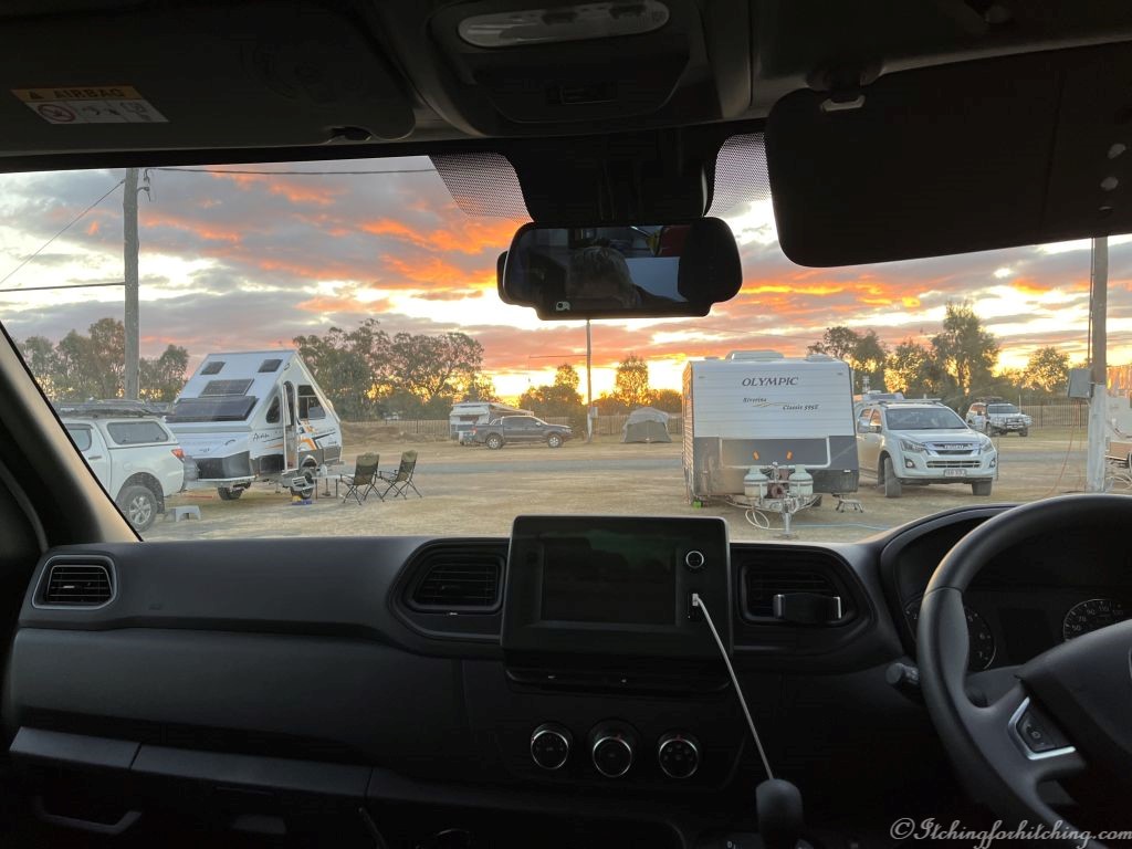 Elle arrives just after 2:00pm and the new rig looks brand new. What a great purchase it has been. It’s too windy to put the awning out but it’s not too early to toast “Betty” with a sparkling Shiraz. We toss a chicken roast called “Aldi” in our oven with some pumpkin. VeeWee cooks the spuds and Elle cooks corn and peas. A quick zap in the microwave and the instant gravy is done for a communal roast dinner. We probably drink too much but it is good to be on the road together again. We receive a text from Toothless in Broome, to say that he’s broken another tooth, this time it’s a brand new $4000 implant that was meant to last a lifetime. Obviously, the tooth’s lifetime not Toothless’ lifetime. After two broken teeth, I’m starting to have doubts about his Missus’ cooking.
