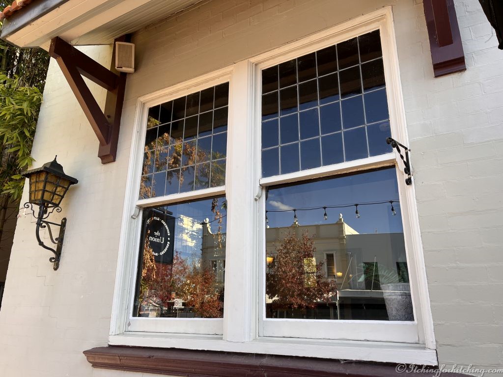Woody walks around town while we girls take the car on a tour. Once again, we’ve forgotten that a) it’s Saturday and b) it’s a country town and people have better things to do than open their shops when the only people around are 3 old ducks snapping photos. Thus, shopping is out but admiring the beautiful buildings and kicking up autumn leaves is definitely in. We stumble upon a welcoming bar/cafe (The Union) with a cheery young woman in charge. She boasts that her barista skills are tops and she is right. It’s pleasant sitting outside in the warm sun with bubbles, because that’s what warm days are meant for.