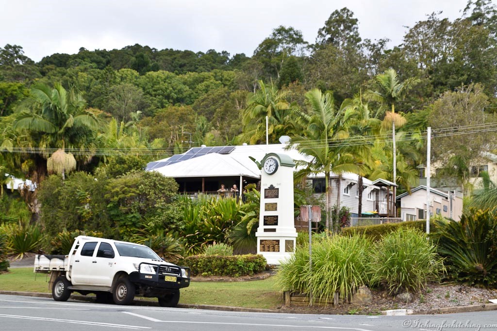 In the afternoon we take a leisurely drive upriver to Uki. Part of the road is still barricaded from last year’s floods. Uki is a quaint village below Mt Warning with a backdrop of rainforest and somewhat of a hippy element. As we moan and groan and heave ourselves out of the car, we can hear a piano being played in the park. We chat with the lady who runs the woodworking shop where we bought some pieces last year, their products are of superb quality.