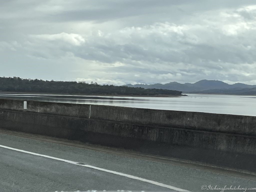 We cross the wall of the Wivenhoe dam and pull into Fernvale to empty those damned toilets. ”Nothing like a catch-up at the dump point,” says Elle.